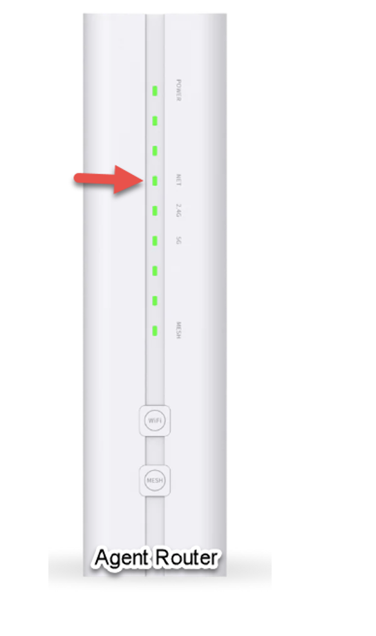 Wait for the “NET” indicator to turn green on the Agent Router (with green indicator, the router is now on Wired Mesh)