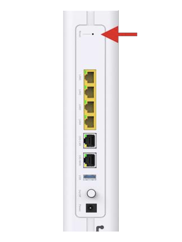 Use a straightened paperclip or a SIM ejector tool to press the RESET hole at the back of the DPN-7212GR device while it is powered on.